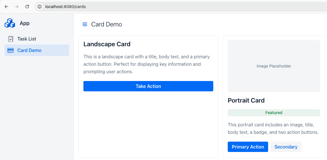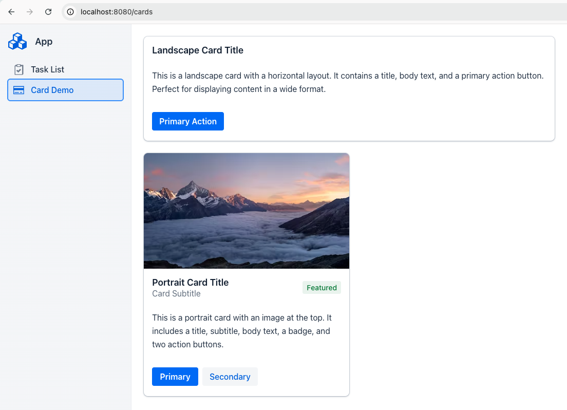 Example 2: two cards created using Vaadin's built-in Card component